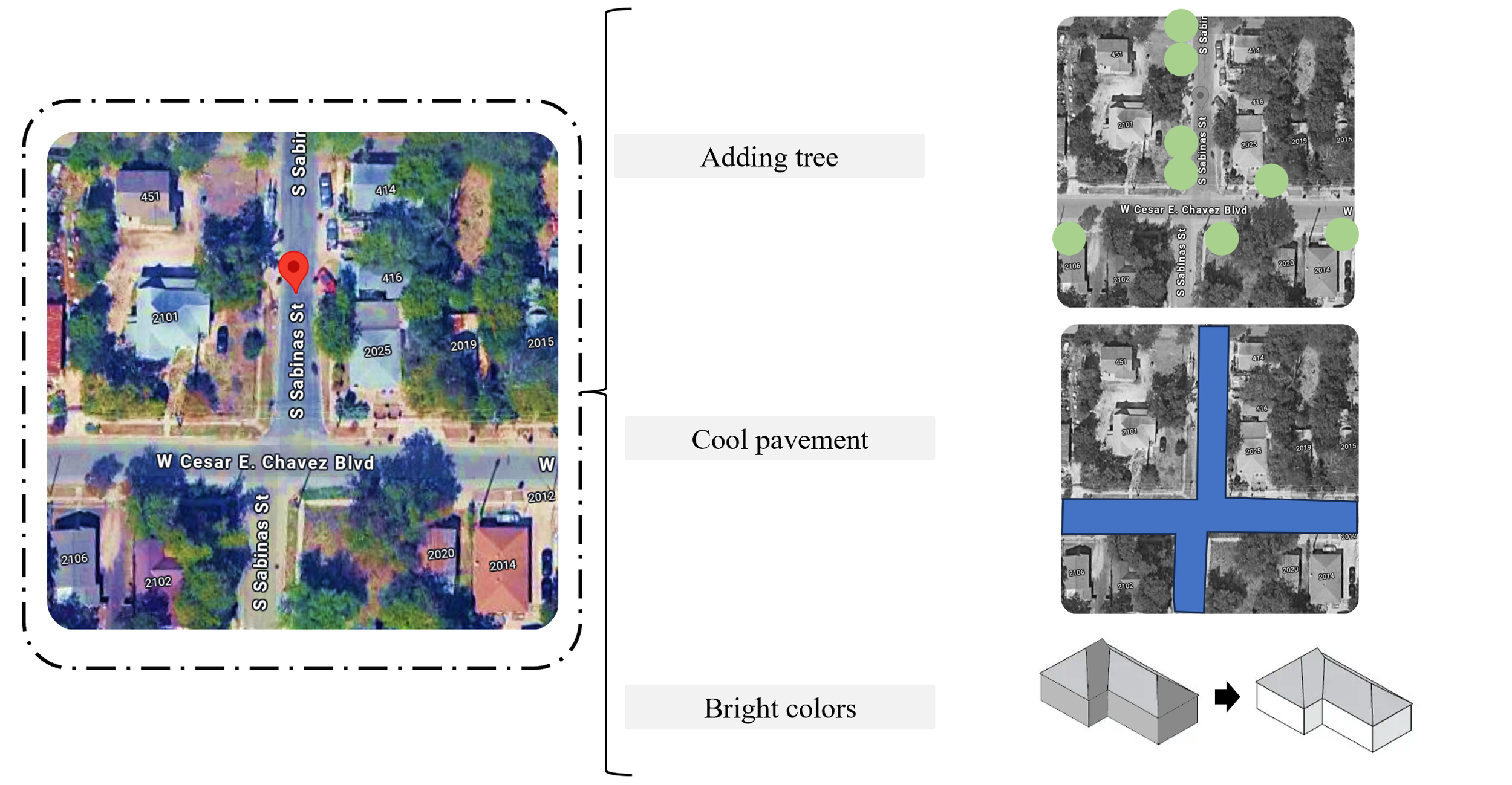 This project investigates a wide range of urban heat mitigation strategies across multiple scales—from city-wide interventions to single-family homes. It focuses on practical solutions such as cool roofs, cool pavements, urban tree planting, and shading structures. Using a data-driven approach, the project prioritizes locations with the highest potential impact for each strategy. Ongoing Computational Fluid Dynamics (CFD) simulations evaluate the cooling performance of interventions at different spatial scales. This integrated analysis aims to inform targeted decision-making and support scalable, science-based approaches to urban climate resilience.